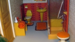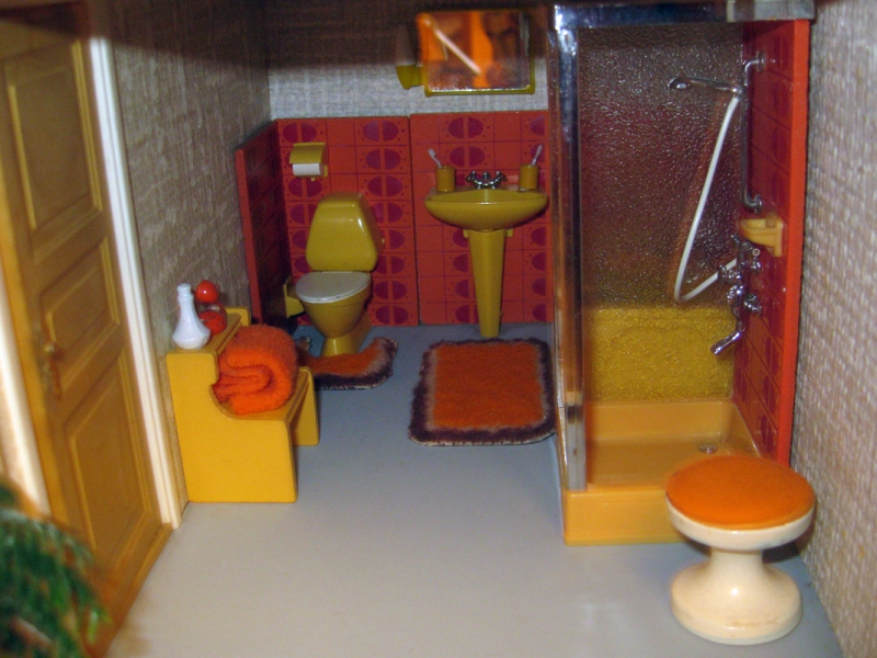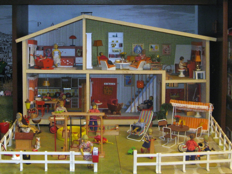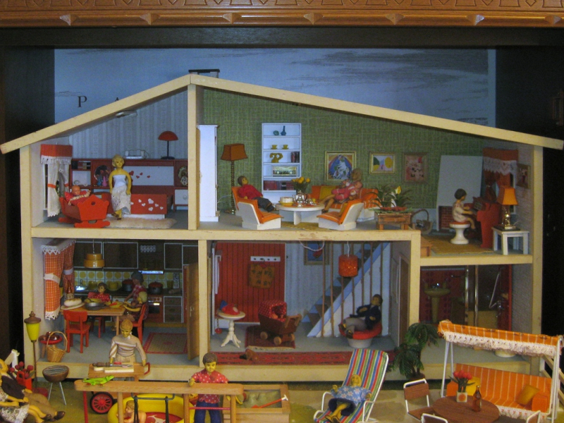 dieses Haus habe ich weitesgehend mit original Möbeln der 1970er Jahre eingerichtet. Die Gartenplatte ist ebenfalls original Lundby.